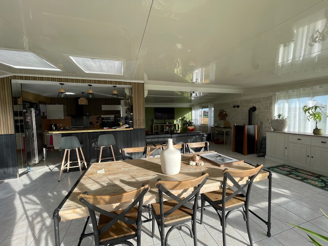 A 2 pas des commerces, au calme, spacieux pavillon édifié de plain-pied sur sous-sol complet, il comrpend:-entrée avec placards, cuisine équipée de 12 m² ouverte sur spacieuse pièce de vie avec véranda 70 m², 4 chambres, salle d'eau et wc indépendant. Arrière cuisine, garage en sous-sol. Chauffage électrique et par poêle à pellets. Système de climatisation. Le tout sur 1163 m² de terrain paysagé.(DPE en cours)