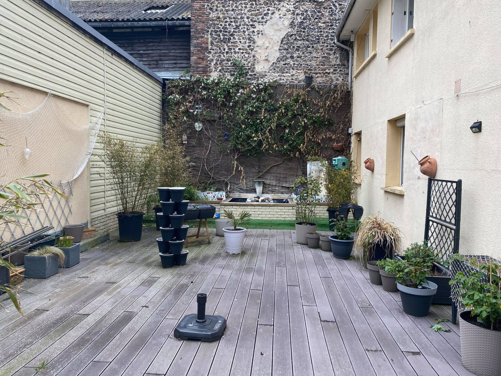 Belle terrasse d'environ 50m2 sans vis a vis,abri de jardin, deux places de parking privatives.