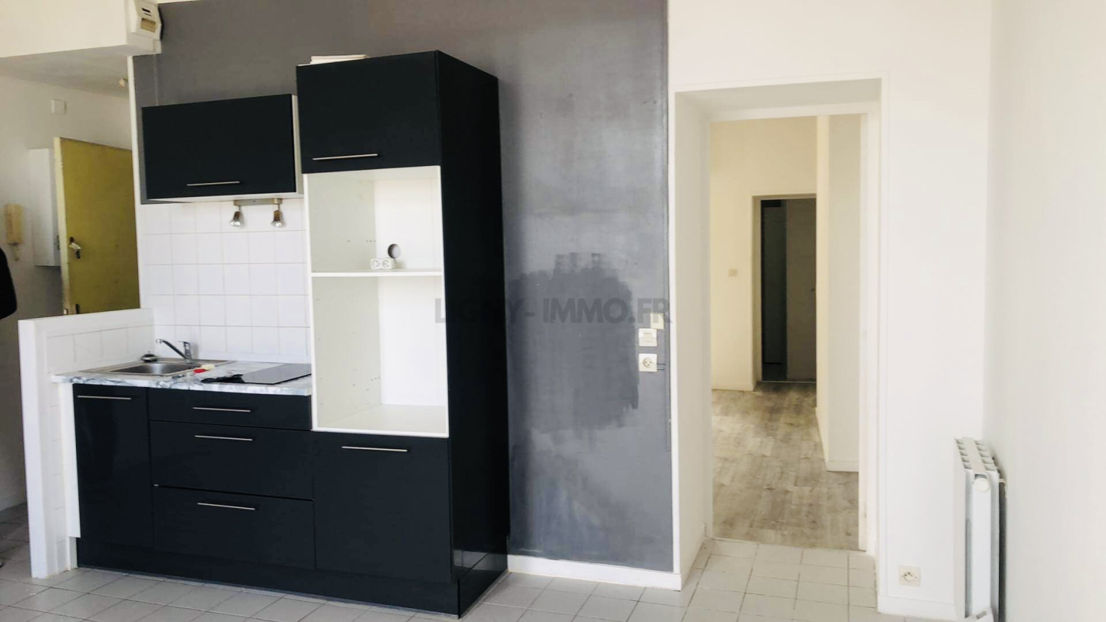 -entrée dans pièce de vie avec cuisine aménagée, chambre, grande salle de bains avec water-closet. Chauffage électrique.