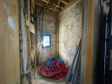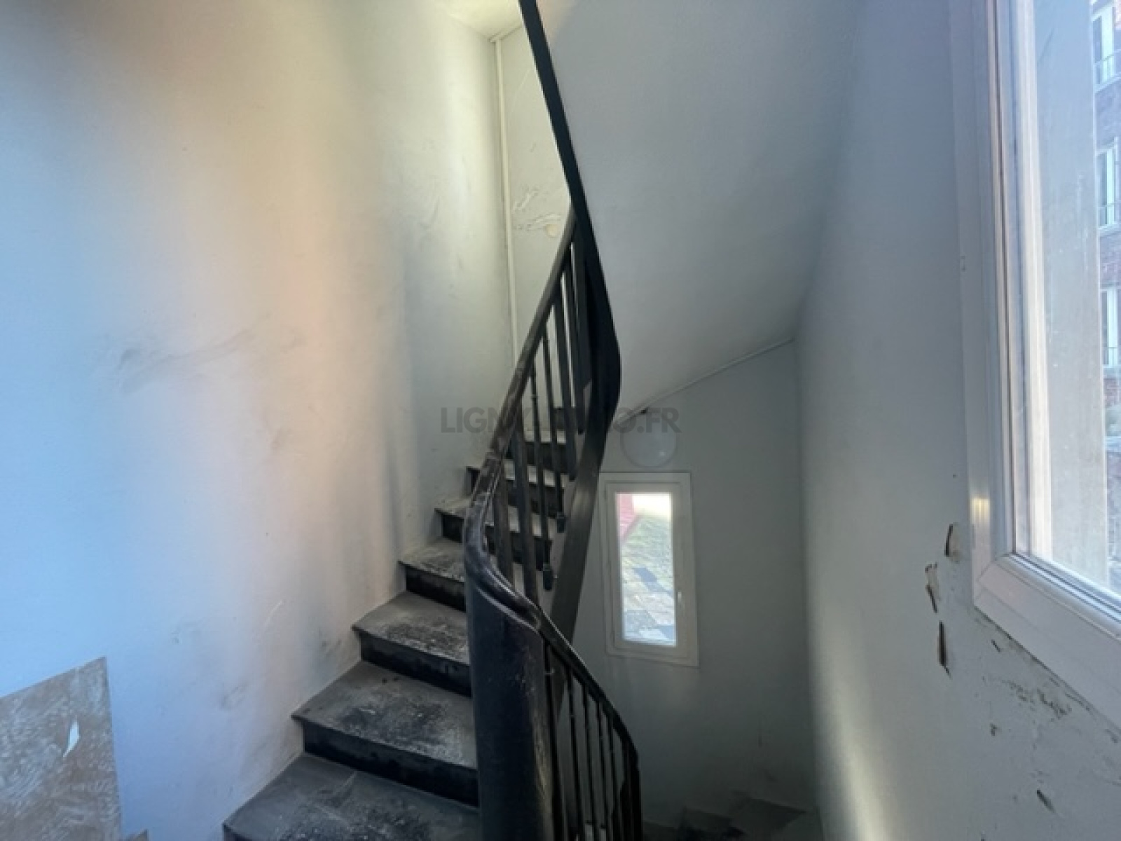 - Les parties communes comprennent une porte et un couloir d'entrée, une cage d'escalier et un local à poubelle à finir de rénover.