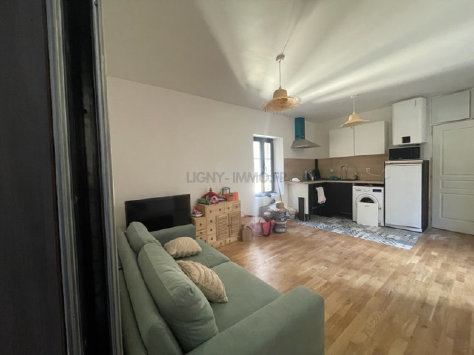 - Un appartement rénové situé au premier étage comprenant: une cuisine aménagée et équipée, un séjour, une chambre, une salle d'eau et un WC. Lot numéro 1 .
