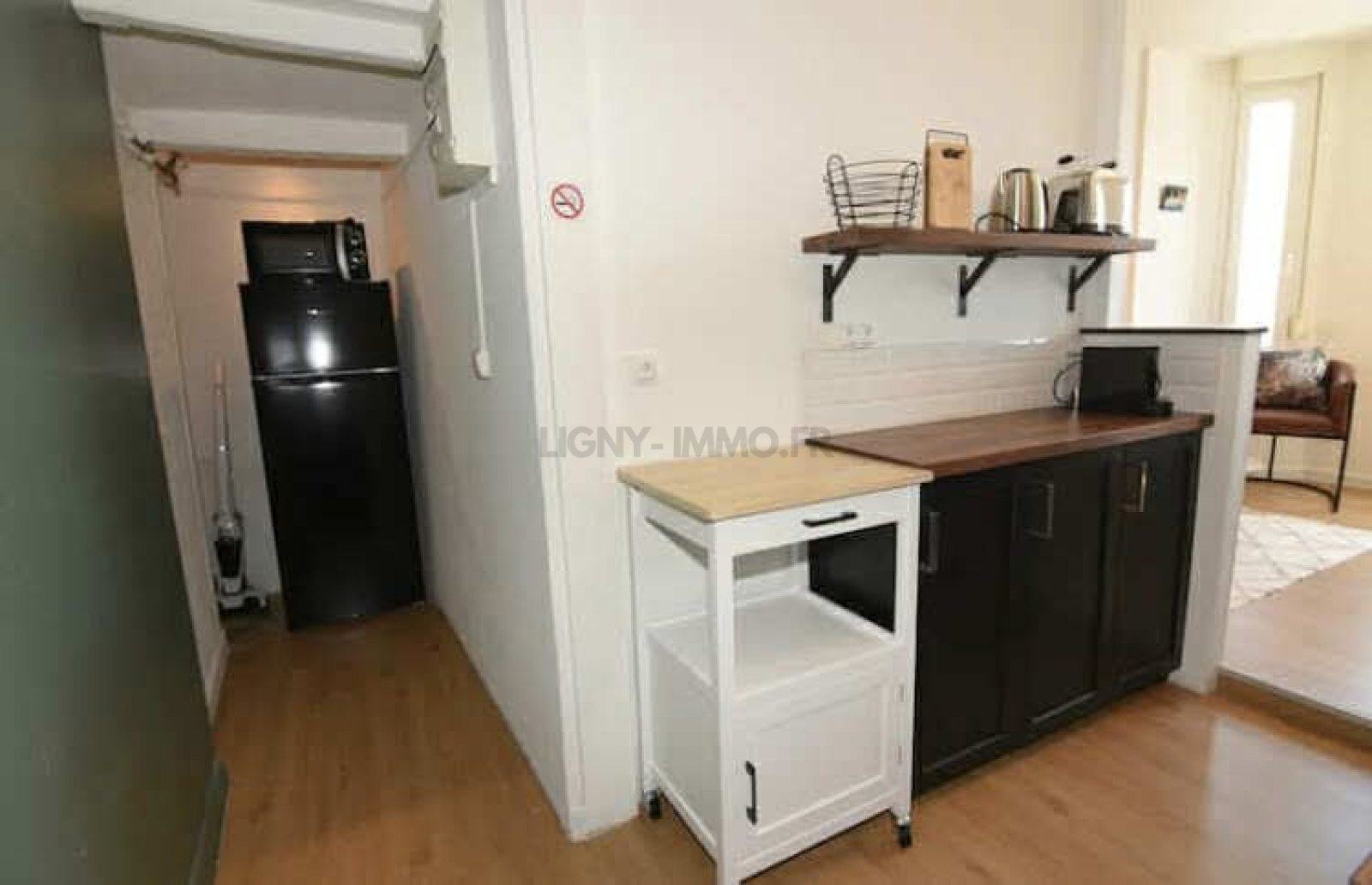 *entrée donnant sur une cuisine aménagée et séjour