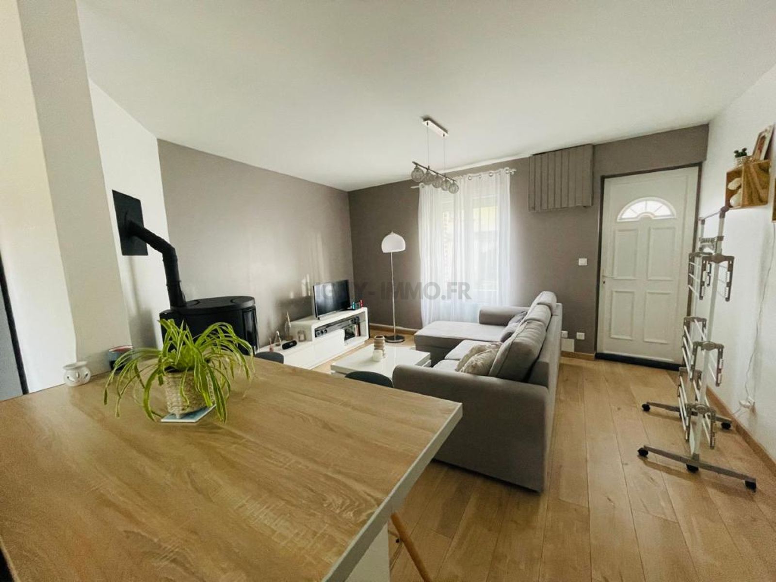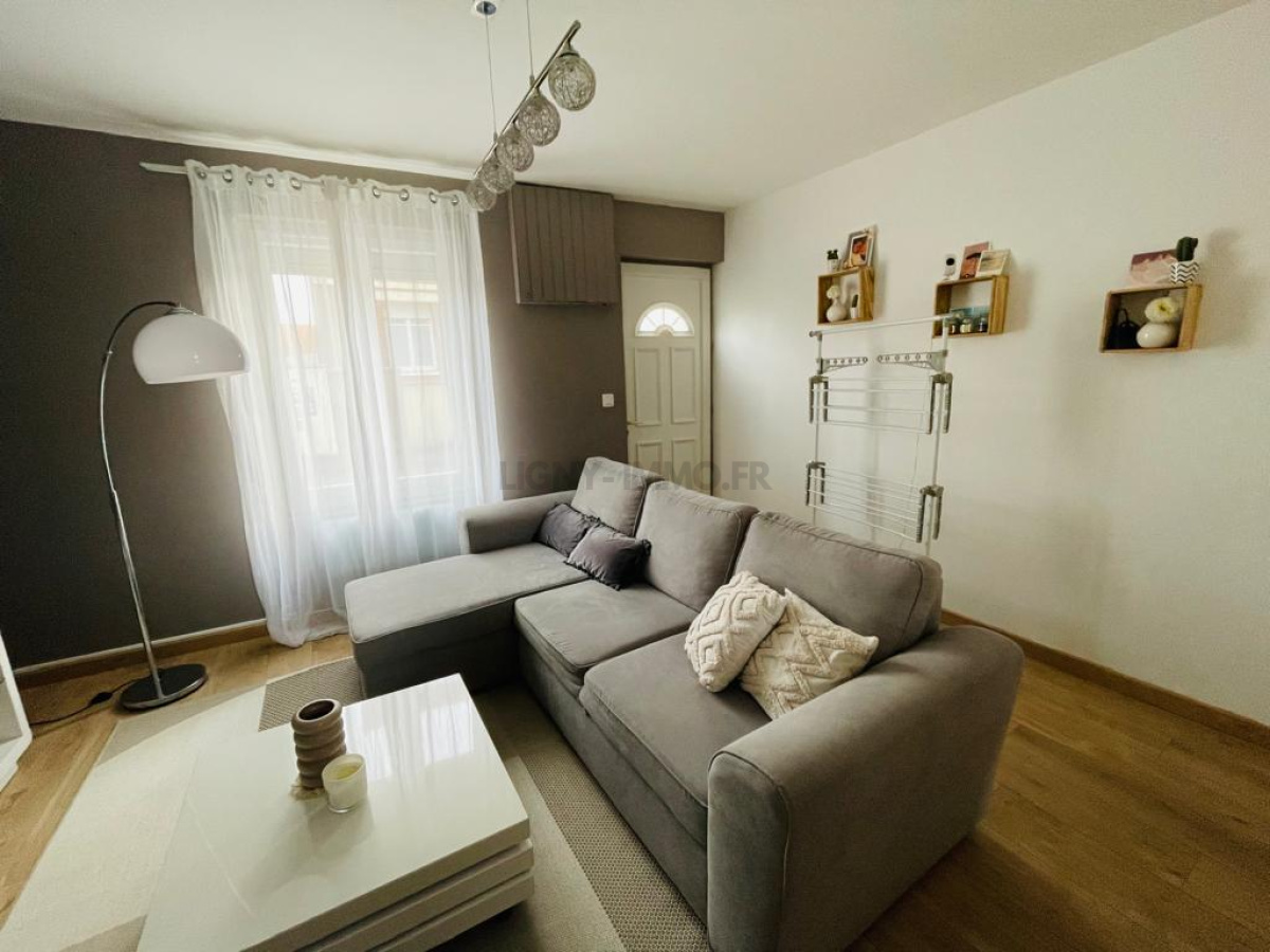 Cette maison de ville en briques, entièrement rénovée avec une décoration soignée. Elle dispose au rez-de-chaussée d'une cuisine aménagée et équipée, d'un séjour salon avec poêle à pellets.