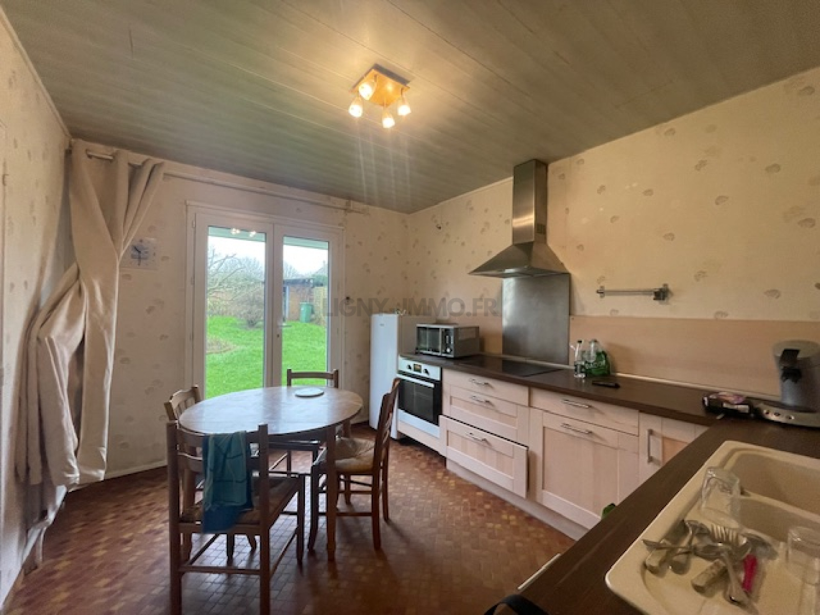 Nouveauté Vieux Neuville, pavillon F5 à rafraîchir édifié sur sous-sol, il comprend: