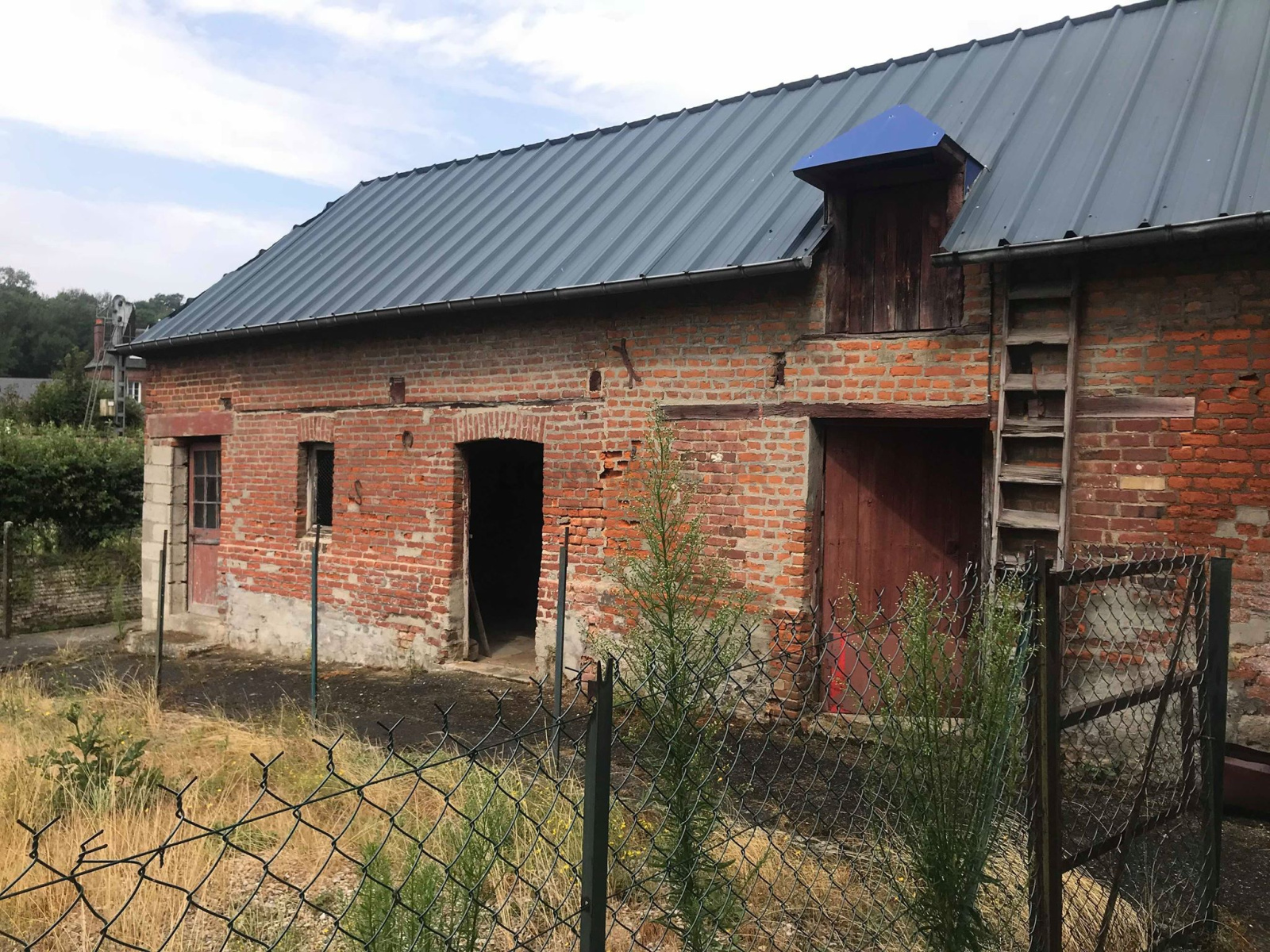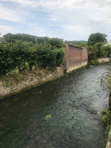 En bordure de rivière un terrain de 330m2 environ avec une belle dépendance en brique.