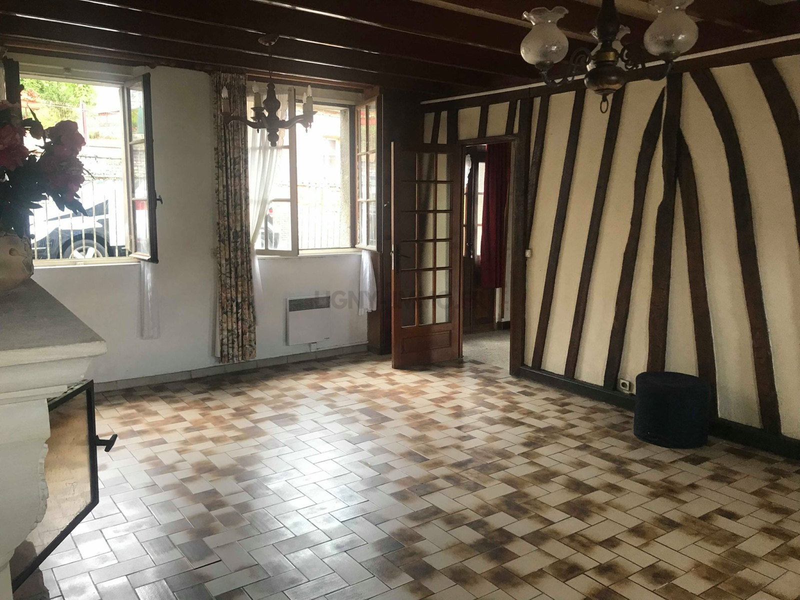 LONGUEVILLE-SUR-SCIE - Ensemble immobilier en plein centre bourg composé de deux logements. Un premier logement de 97m2 comprenant une cuisine, un séjour avec cheminée d'environ 35m2. A l'étage deux chambres, un bureau ou dressing, une salle de bains et wc. Au deuxieme étage un grenier à aménager.