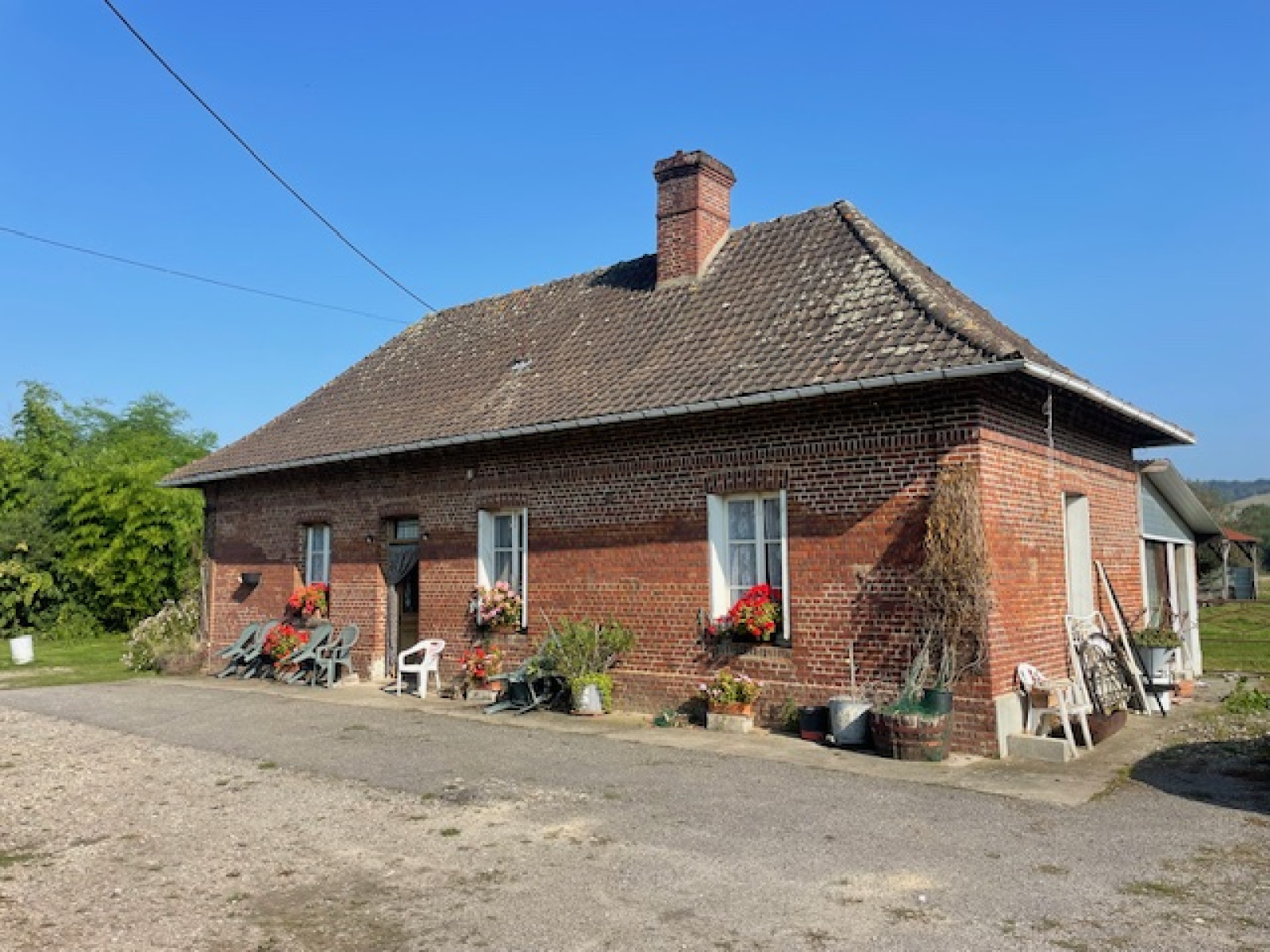 -entrée dans une cuisine, séjour, deux chambres. Un agrandissement à l’arrière avec spacieuse pièce de vie et un cabinet de toilette. Grenier au-dessus aménageable.