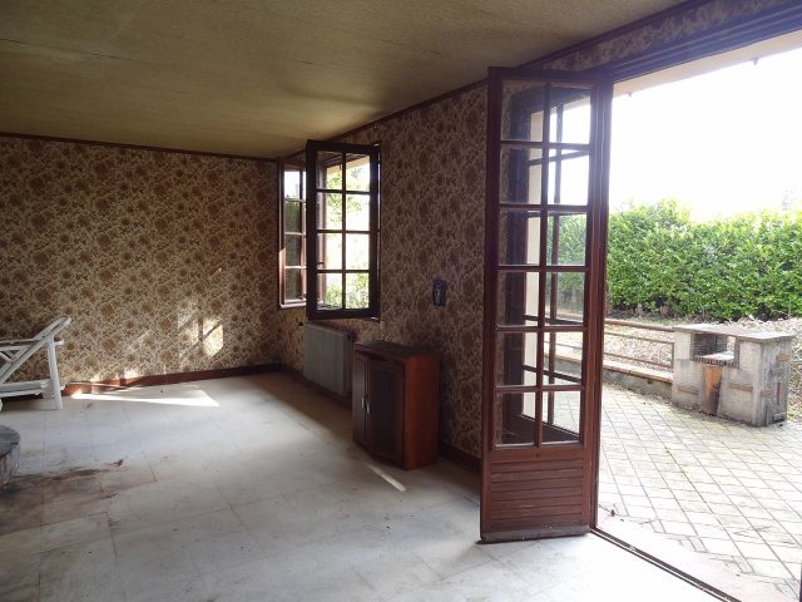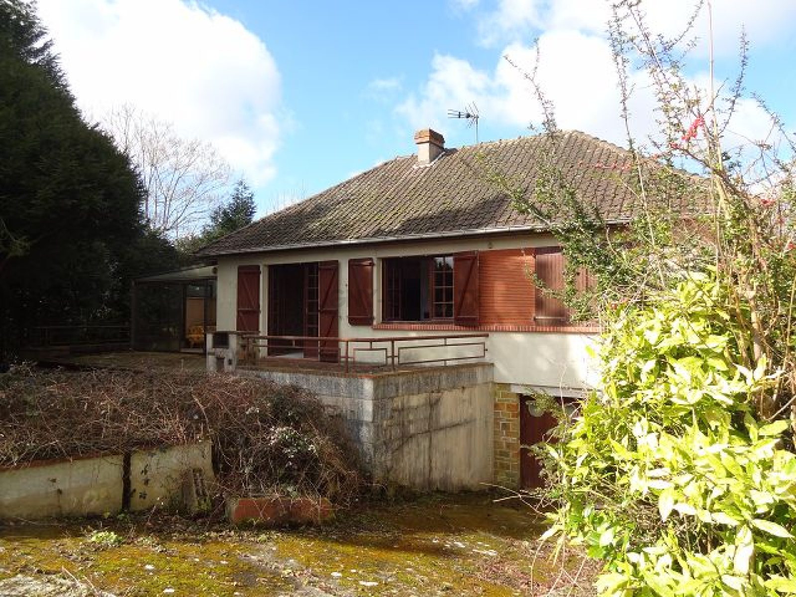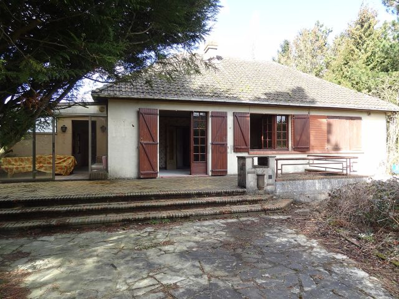 Pavillon à rénover de plain-pied édifié sur sous-sol complet comprenant: entrée sous véranda, cuisine, séjour avec cheminée à l'âtre. 2 chambres et salle de douche.Le tout sur un grand jardin de 2398 m² avec dépendance.