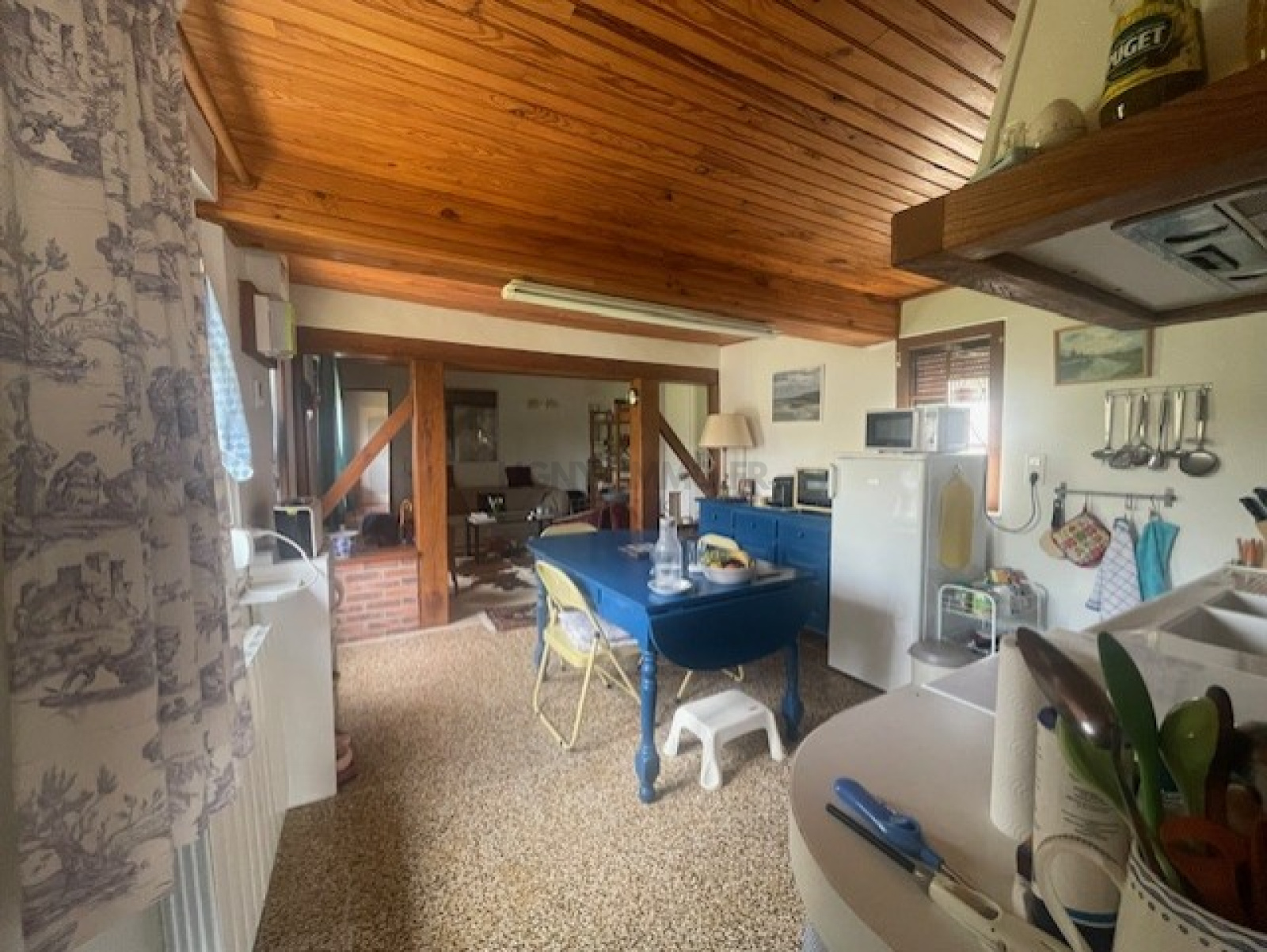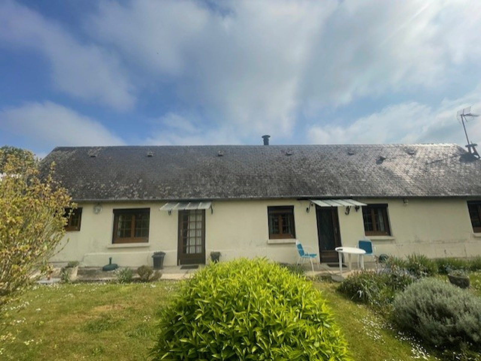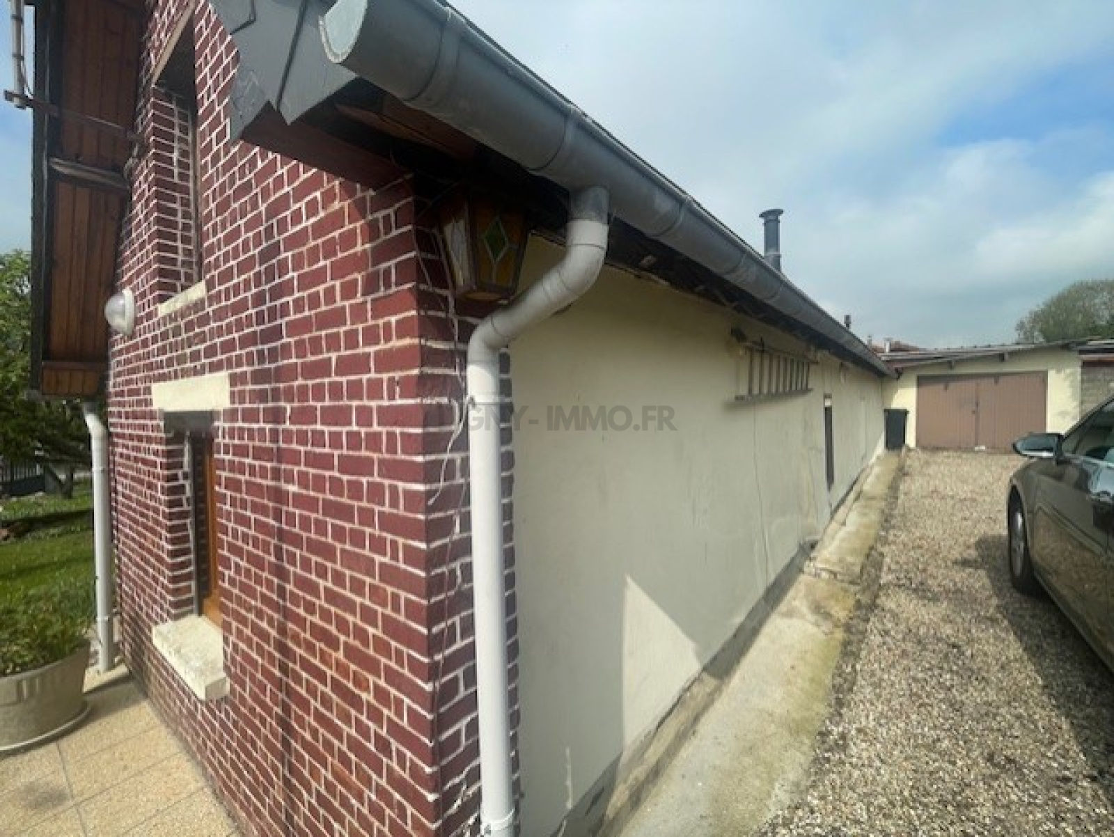 - Une entrée sur cuisine, un salon, une salle de douche, WC et deux belles chambres. Un garage. Le grenier est aménageable.