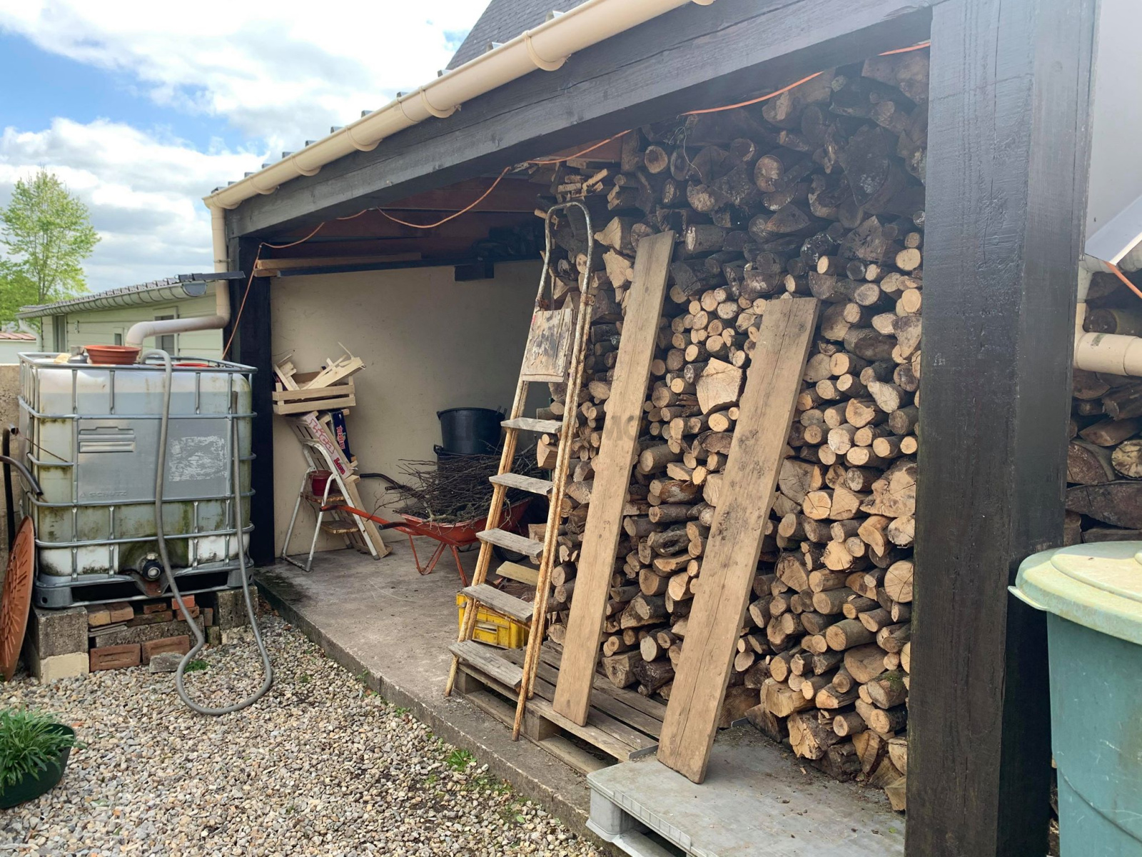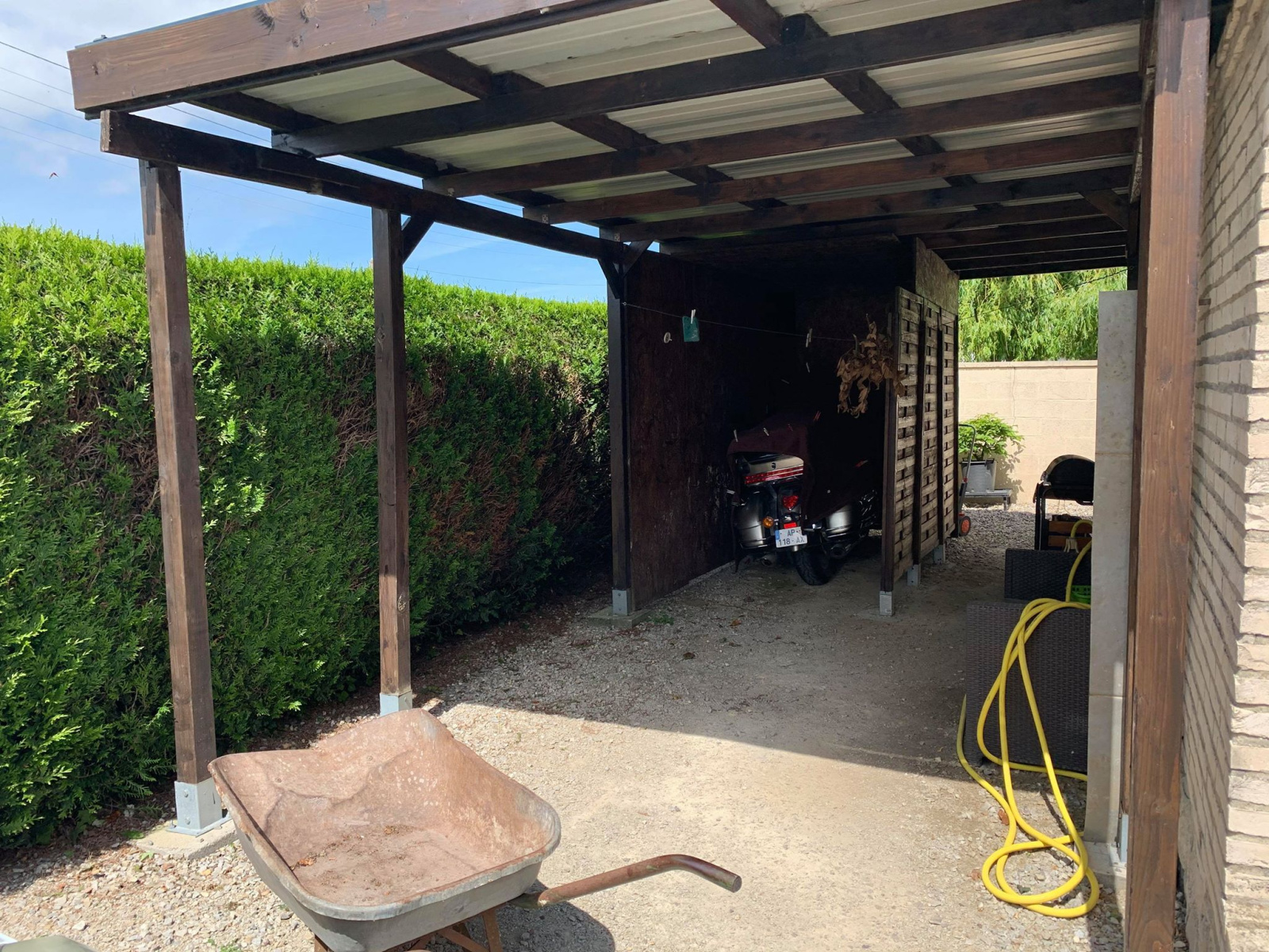 Une buanderie, une batiment de jardin et deux appentis pour voiture, moto et bois.