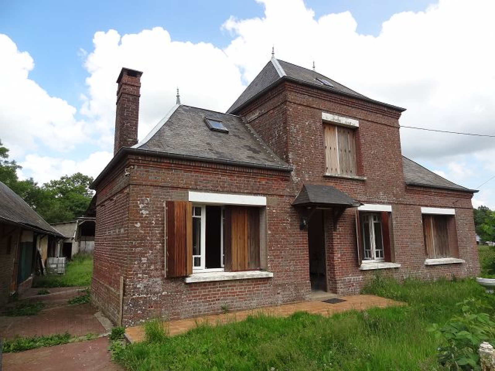 Corps de ferme situé à 20 minutes de Dieppe et 7 km de St Nicolas, comprenant dans la maison principale: grande cuisine avec coin repas, salle-salon avec cheminée, chambre, salle de bains et wc en rdc. Lingerie. A l'étage, grand palier bureau, 2 chambres. Possibilité de créer des gîtes dans les nombreuses dépendances. Charreterrie, étable etc... Le tout sur 5000 m² environ de terrain.