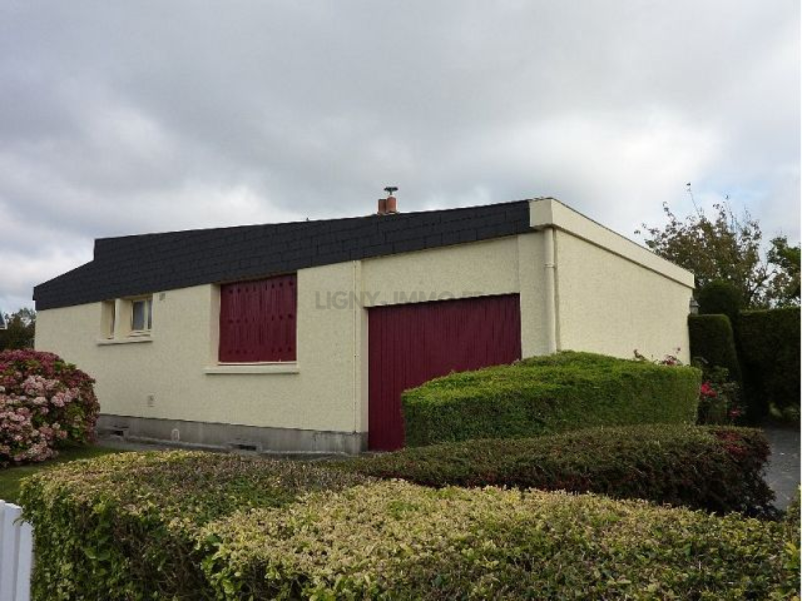 Proche commerces et écoles, maison individuelle de plain-pied édifiée sur sous-sol complet, elle comprend: entrée, cuisine aménagée, grand séjour avec cheminée à l'âtre. 3 chambres, salle de bains, wc. Garage. Terrasse. Le tout sur environ 500 m² de jardin clos.