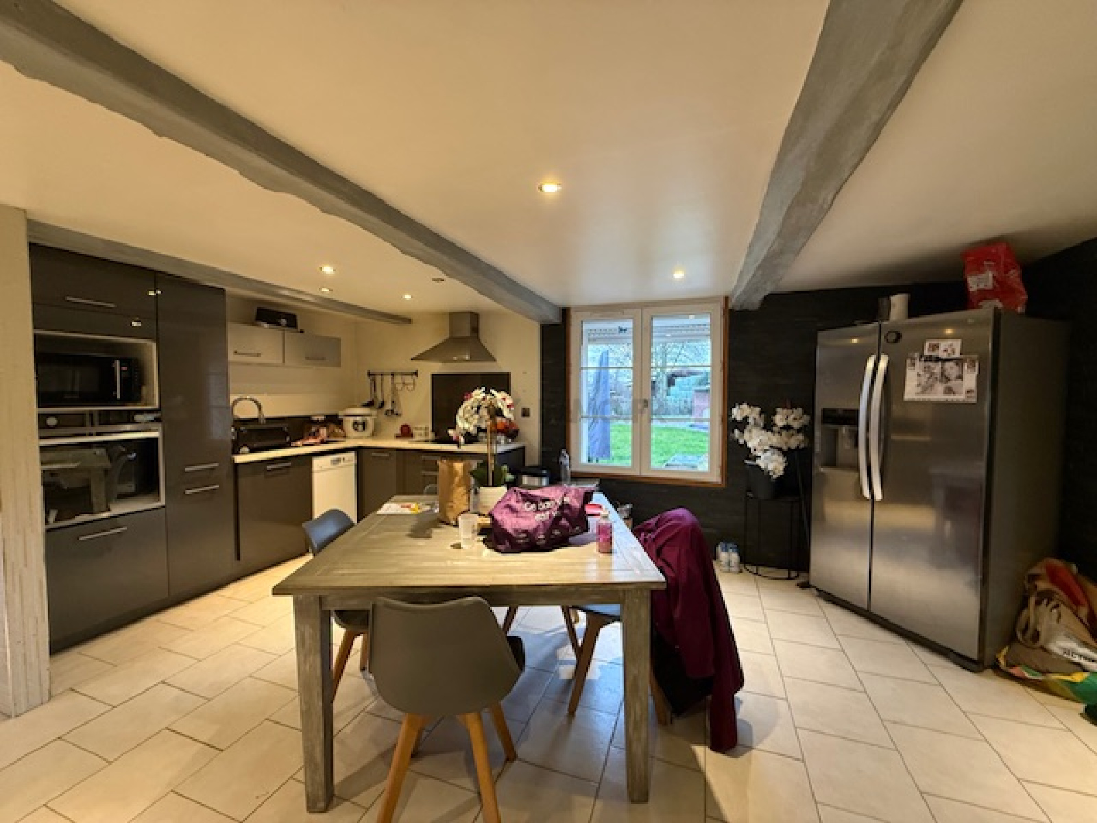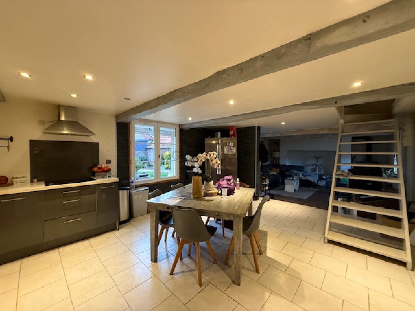 -en rez-de-chaussée: entrée, spacieuse pièce de vie avec cuisine aménagée ouverte sur séjour (45 m²) agrémenté d'un poêle à bois, jolie salle de douche et wc.